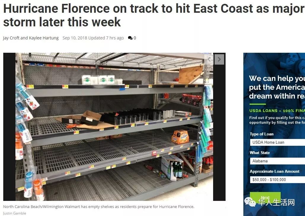 飓风来了!佛罗伦斯正在以惊人的速度发展壮大,史上最强飓风佛罗伦斯飓风力不断增强 向美东迫近,全美多州已经宣布进入紧急状态!很多城市已经发出了强制撤离命令!机票改签,赛事有变,超市已经被抢购一空,危险来临,请在美国伙伴们,为大规模灾难的可能性做准备!华盛顿邮报指出,佛罗伦斯飓风(Florence)最快13日在东南部或大西洋沿岸中部登陆前,将成为四级强烈飓风。
