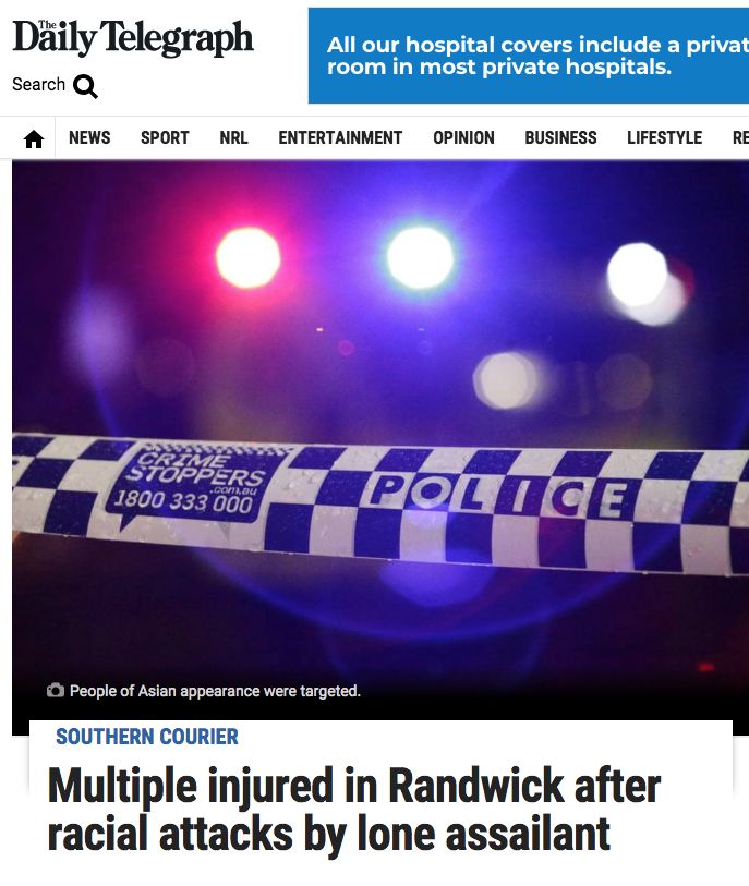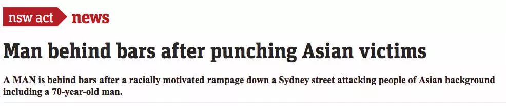 刚刚,澳洲多家媒体集中报道了一件让悉尼华人义愤填膺的恶性袭击事件,就在昨天晚上,一名25岁的澳洲男子在Randwick区的街道上暴力袭击路人,专门针对亚洲面孔,见人就打,就连老人和女性都下了狠手!简直让人怒不可遏!